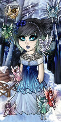 Erilitha is the eldest daughter of Lord and Lady Snow. She is a bright young woman, though not as bright as her younger sister Ocirida. Since her sister's departure from the home, and in turn, the family, Eri has been trained in the ways of the throne. She has been mentored in ruling the kingdom as her parents would. This became especially important to her once her mother began growing ill of unknown causes. However, recently Eri's health has been failing her. She began falling ill alongside her mother after a visit from a mysterious dark-haired stranger with an oppressive aura.[NOTE!! Erilitha actually exists on Subeta as a Reva minion to Renedeya's pet, Lord Snow!]